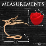 Deze elegante rozenkaarsenhouder heeft gouden bladeren en pinnen die de kaars op zijn plaats houden. Terwijl de was smelt, vormt de was zich tot een poel die van het gouden blad kan worden gegoten voor een prachtige display die de ogen verwent voordat het de zintuigen prikkelt! Gemaakt van een nikkelvrije zinklegering, is het ontworpen om de hoge temperaturen van de brandende kaars aan te kunnen. Geniet van de rode roos die bij deze houder wordt geleverd en plaats deze recht op de pin zodat het lijkt alsof het uit een gouden steel bloeit! De sojakaars heeft een laag smeltpunt en is vriendelijker voor de huid dan kaarsen die heter branden. Wanneer deze op is, kun je een vervangende kaars kopen door meer Burning Passion rozenkaarsen (AH229) aan te schaffen. De sojakaarsen zijn gemakkelijk schoon te maken en vlekken niet. Speel veilig en leg elke keer een handdoek neer om druppels op te vangen. Er zijn veel manieren om van wasplezier te genieten. Volg een cursus om te leren hoe je plezier kunt hebben en veilig kunt blijven! Als je nieuw bent met wasplezier, richt dan een spetterzone in en leg een handdoek of zeil neer om te beschermen tegen wasvlekken. Test het eerst op je arm of dij voordat je het op je partner probeert. Begin hoog en kom dichterbij terwijl je de temperatuur en techniek test. Begin met het vasthouden van de kaars op 3 voet afstand van het lichaam om was te laten druppelen. Blijf de vlam uitblazen voordat je giet om spatten te verminderen. Laag de was over dezelfde plek om de intensiteit te verhogen. Wrijf je hand over de wasdruppels om de warmte te verspreiden. Afmetingen: Houder: 8,6 cm Hoogte x 9,1 cm Breedte x 2,5 cm Diepte. Kaars: 4,1 cm Hoogte x 4,8 cm Breedte x 4,6 cm Diepte. Brandduur: Ongeveer 1 uur. Materialen: Kaars: Sojawas, smeltpunt 38-42˚ C. Houder: Zinklegering.