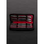 8-piece dilator set. The double end dilators have different sizes and are delivered in a beautiful black leather cover. Each sound is in graduated sizes starting from French # 3-4 all the way up to 17-18. Gently insert.