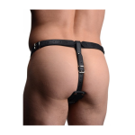 Houd je partner gevuld en klaar voor actie! Dit harnas combineert een harde, meedogenloze metalen cockring met een geribbelde siliconen buttplug. Trek de penis en het scrotum door de ring om een keiharde en ultragevoelige erectie te creëren. Duw de taps toelopende punt van de plug naar binnen en geniet van het plezier van uw partner terwijl de ribbels daarna naar binnen gaan. Span de banden aan zodat ze zich gevangen voelen en geniet van hun wanhoop! De plug kan ook worden verwijderd om alleen mee te spelen, met een handige zuignap. Niet compatibel met siliconen smeermiddel. Reinig met milde zeep en warm water.