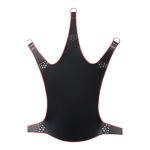 Zwart lederen sling met elegante rode bies voor een zeer warme stijl. Hij is ontworpen met 5 bevestigingspunten. Afmetingen 113 x 122cm. Fijn en duurzaam echt lederen materiaal. Hoge kwaliteit. Plantaardig gelooid. Gemaakt in Europa.