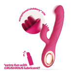 De beste cunnilingus gecombineerd met een krachtige G-spot massage zijn de sterke punten van de Mirenca vibrator! Ontdek ook de vibratie functie en je hebt je nieuwe troetelkonijn.Het glamoureuze handvat is fantastisch voor solo spel of met je partner.Mirenca weet precies waar ze je keer op keer moet raken zonder enige genade. Breng je seksuele bevrediging naar een hoger niveau en geef je over aan ons.Druk 2 seconden op de aan/uit-knop om hem aan en uit te zetten. Druk op de vibratieknop om te activeren en te schakelen tussen de 10 vibratiestanden, op de schacht en tongen.Druk op de aanraakknop om te activeren en te schakelen tussen de 10 streelstanden, gericht op de G-spot.Volledig opladen voor gebruik. Het lampje knippert wanneer de oplader wordt ingeschakeld om aan te geven dat de batterij wordt opgeladen. Als het opladen klaar is, blijft het lampje branden. Volledig opladen voor 120 minuten.Gebruik de vibrator 60 minuten.Schoonmaken is heel eenvoudig, gewoon wassen met warm water en neutrale zeep of gebruik een toy reinigingsspray. Gebruik een antibacteriële reinigingsspray voor het beste resultaat. Drogen en opbergen uit de buurt van licht en warmtebronnen.Het gebruik van glijmiddel wordt aanbevolen. Gebruik altijd glijmiddel op waterbasis. Oliën en andere soorten glijmiddelen beschadigen de integriteit van het materiaal.Crushious glijmiddelen zijn de beste aanvulling op je Crushious speeltjes.Raadpleeg de gebruiksaanwijzing voor gebruik.Afmetingen:22,5 cm totale lengte 12,5 cm inbrengbare lengte 3,5 cm diameter.Materiaal:Siliconen, ABS.
