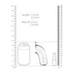 Dit specifieke model is uitgerust met een urethraal klinkende dilator. Het is gemaakt van gladde, flexibele medische kwaliteitssiliconen, die in de onderkant van het apparaat klikken en in de opening van de urinebuis gaan. De totale lengte van de dilator is 20,5 cm (8.07), de inbrengbare lengte is 20 cm (7.87) en de diameter is 3,5 mm (0.137).