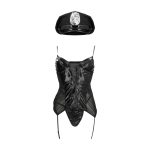 Laat je verbeelding de vrije loop en ga verder dan de grenzen van de realiteit! Dominante politieagent kostuum met een strak wetlook bodysuit en bijpassende pet – klaar om de aandacht te trekken en de controle over de situatie over te nemen.