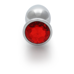 Ronde Gem Butt Plug - Groot - Zilver/Ruby Rood