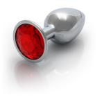 Ronde Gem Butt Plug - Klein - Zilver/Ruby Rood