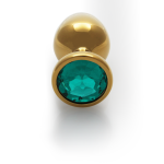 Ronde Gem Buttplug - Groot - Goud/Emerald Groen