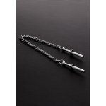 Deze goed ontworpen tepelklemmen zijn aan elkaar bevestigd met een ketting van 32 cm.De Nibbel Grabber heeft klemmen met naaldpunten die de tepelstimulatie tot het uiterste zullen brengen.Eenvoudig te bevestigen en te verwijderen.Het is gemakkelijk schoon te maken.Ben je klaar voor wat sterk genot? Geniet van dit speelgoed van 'Shots Steel'/