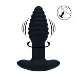 Vibrerende en Draaiende Geribbelde Siliconen Anale Plug - Zwart
