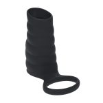 Vibrerende Geribbelde Siliconen Cock Sleeve en Ball Ring - Zwart